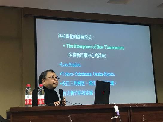 本网讯(通讯员 徐伟 杨永丰)11月14日晚7:00,应武汉工程大学土木工程与建筑学院邀请,美国加州大学洛杉矶分校 (UCLA) 艺术及建筑学院博士、联合国教科文组织国际艺评人协会副主席(Vice-president, AICA, UNESCO, UN)陈朝兴教授,做客土木工程与建筑学院,于武昌校区三教六楼多功能厅举办了主题为“后现代都会及其城市设计”的专业学术讲座活动。讲座由土木工程与建筑学院建筑与城乡规划系系主任徐伟主持。