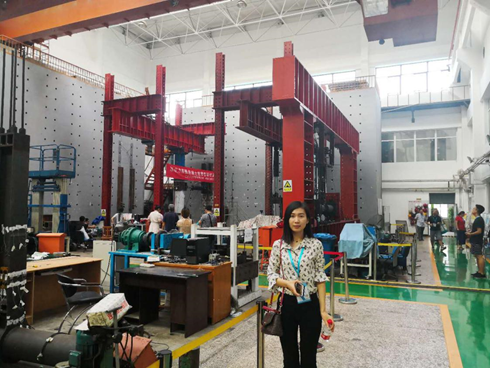 土木系系主任吴巧云在北京工业大学结构实验中心