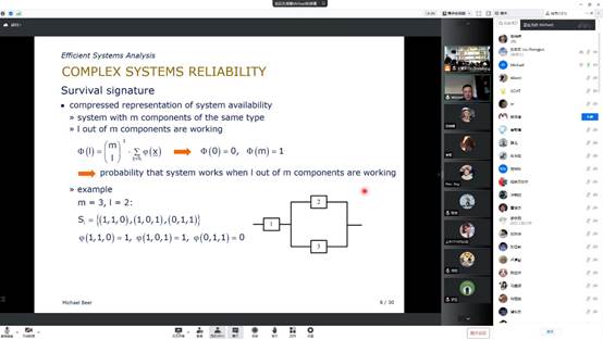 (通讯员 刘章军)应我校国际交流与合作处、土木工程与建筑学院邀请,德国汉诺威莱布尼茨大学风险与可靠性研究所所长、中国国家外国专家局高端外国专家Michael Beer教授于2022年6月至11月为我校师生作了“世界著名科学家来鄂访学计划”暨校庆50周年系列线上学术讲座。活动由刘章军教授与蒋欣教授共同主持,线上线下师生共600余人参加了此次系列讲座活动。