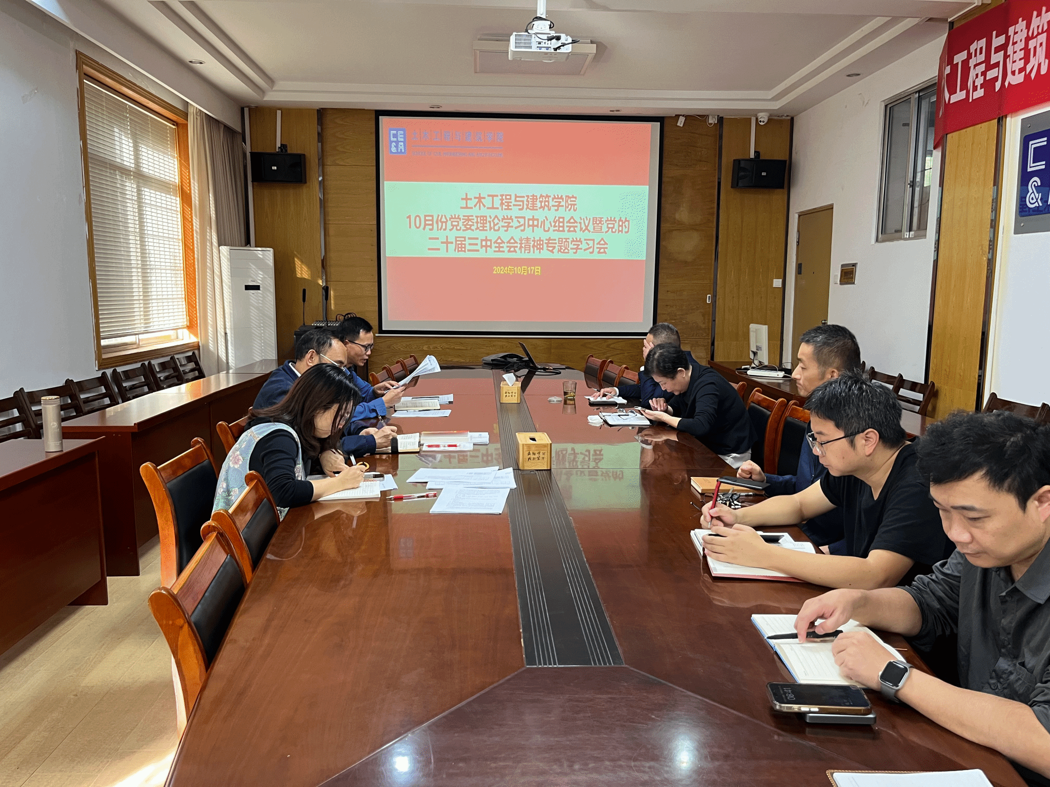 (通讯员 肖咏霓)10月17日,土木工程与建筑学院召开党委理论学习中心组会议,深入学习贯彻党的二十届三中全会和省委第十二届七次全会精神。学院党委理论学习中心组成员、院长助理参加会议?;嵋橛裳г旱澄榧锹叫轮鞒帧?/span>