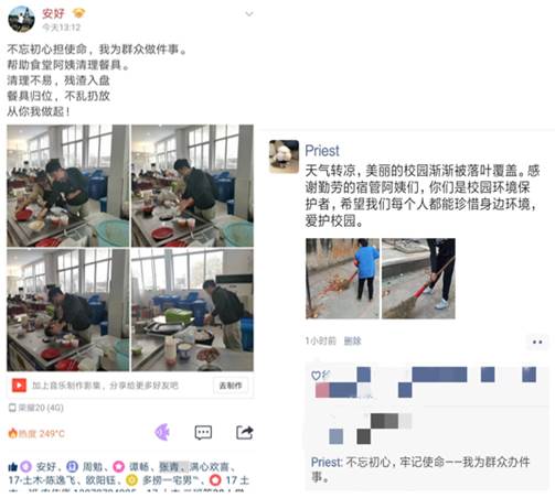 帮武昌校区退休老教师送午餐、打扫宿舍集体区域卫生、帮宿管阿姨整理宿舍垃圾、清扫教学楼教室卫生、清理宿舍区域小广告、整理学校摆放无序影响校园环境的自行车、帮助食堂阿姨回收餐盘……等等一件件小事,聚少成多,聚沙成塔,形成集群效应,向武昌校区展示了土建学院学生党员和积极分子的担当。
