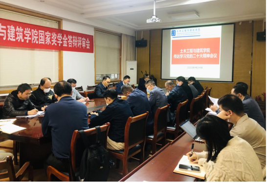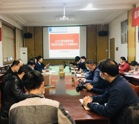 (通讯员:夏添)10月26日下午,土木工程与建筑学院在213会议室召开党委理论学习中心组(扩大)会议,传达学习党的二十大精神。学院党委书记陆新、副院长(主持工作)刘章军,各党委委员、教工支部书记、系主任、辅导员和民主党派、党外知识分子代表等参加会议,会议由陆新书记主持。