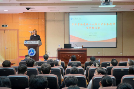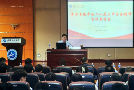 韩高军从党的二十届三中全会的重大意义、重要精神、重大主题、重大举措、抓好全会精神贯彻落实五个方面进行了系统宣讲和深入解读;根据统筹推进教育科技人才体制机制一体改革的要求,结合学校事业发展实际,分析了学校在教育改革、学生培养、人才建设、社会服务等方面的任务和要求,提出要以改革思维加快推进事业高质量发展,要求每位师生结合全会精神和工作实际,深入思考“我们怎么做”,以扎实举措推进全会精神落地落实。他强调,全校师生要紧扣教育强国建设使命,全面贯彻党的教育方针,落实立德树人根本任务,切实把思想和行动统一到党的二十届三中全会精神上来;要把学习贯彻会议精神与学校事业发展紧密结合,锚定一流学科建设目标,进一步深化教育综合改革,深入贯彻落实学校党委作出的九个方面重大举措,切实以钉钉子的精神持续抓好各项改革任务的落实;要在转变观念、破旧立新中奋发有为,在围绕中心、服务大局上彰显作为,为推动学校事业高质量发展、推进中国式现代化湖北实践和教育强国建设作出新的更大贡献。
