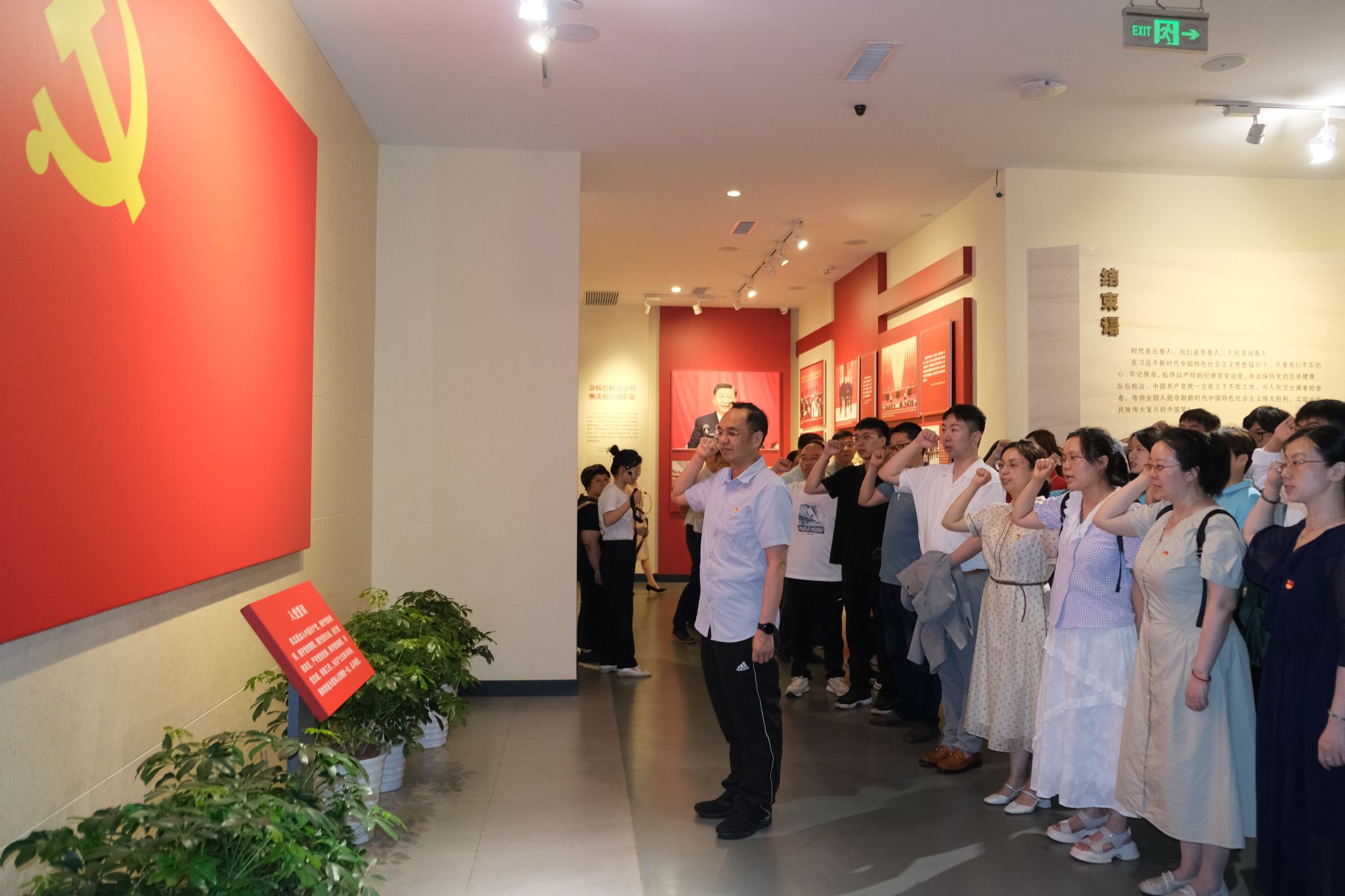 学院党委书记陆新带领全体党员面向党旗,举起右手,重温入党誓词。