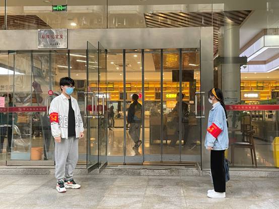 新春伊始,疫情防控又到了关键时期,在疫情防控特殊时期,学生党员没有忘记自己的党员身份,重温入党誓词,牢记初心使命,树立必胜的信念,积极投身校园参加志愿防疫工作,每天安排将近20名学生党员值守武昌校区各食堂出入口,教室出入口,礼貌阻止未戴口罩的师生进入人员密集活动场所,积极在校园普及相关防疫知识,坚定抗疫防疫必胜的信念。