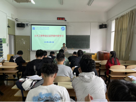 (通讯员:曾学菲)2021年10月29日下午,土木工程与建筑学院在W506教室召开工程认证学生动员大会,学院党委副书记成轶、学工办辅导员,土木大类专业班级主要负责人参加动员会。