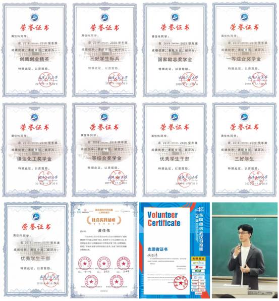 黄佳伟参加过很多创新创业大赛,并且取得不错的成绩。不同的人参加比赛有不同的目的,而他本着锻炼自己的统筹能力与策划能力的心去参加各种比赛。希望以此打开自己的视野与交际圈,能认识到不同专业、不同年级、不同学校的人,就接触到更多的信息,也会为自己争取到更多的机会。黄佳伟说:“凡事预则立,不预则废。只有有了目标,后面你做的事情才能顺理成章。可以毫不夸张的说,创业大赛带给我的是全方位的成长,给我的大学赋能不少,甚至让我提前向职场过渡。”和不同层次的人交流,从朋友圈看到推送消息,也让别人从自己的朋友圈看到自己的产品或项目,说不定机会就来了。因为黄佳伟认为:“弱者等待时机,强者争取时机,智者创造时机。有奋斗才会进步,有奋斗才会有成果,有奋斗才会成功。”