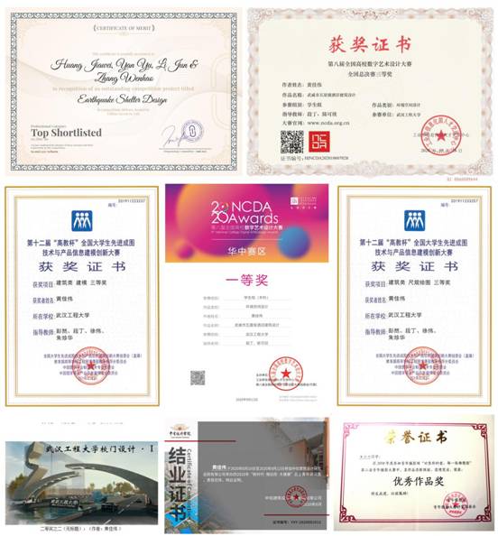 8. 2019年7月获教育部第十二届“高教杯”全国大学生先进成图与信息建模创新大赛建筑类·信息建模全国三等奖;