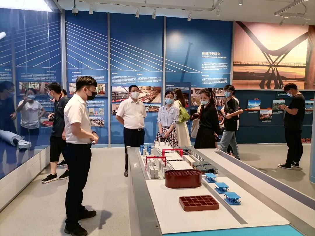(通讯员:张中强)建桥之史读党史,赤子之心照初心。时值建党百年,为大力弘扬红色传统,赓续建桥报国精神,引导当代大学生为建设社会主义现代化强国贡献青春力量,我校土木工程与建筑学院“赤心迭桥”暑期社会实践团于7月13日前往武汉市桥梁博物馆参观学习,将党史教育与专业学习相融合,扎实推动党史学习教育走心走实走深。参加本次活动的有中铁大桥局集团第五工程有限公司总工程师、武汉工程大学土木工程与建筑学院优秀校友叶绍其,土建院党委副书记成轶,院团委指导老师张中强和实践团的部分成员。