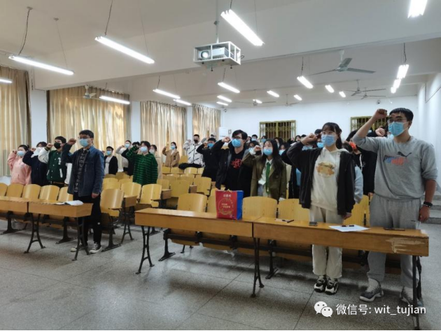 会议开始后,首先进行了迎团旗、唱团歌环节,并在主持人的带领下重温了入团誓词,铿锵有力的誓言展现了大家坚定的理想信念。