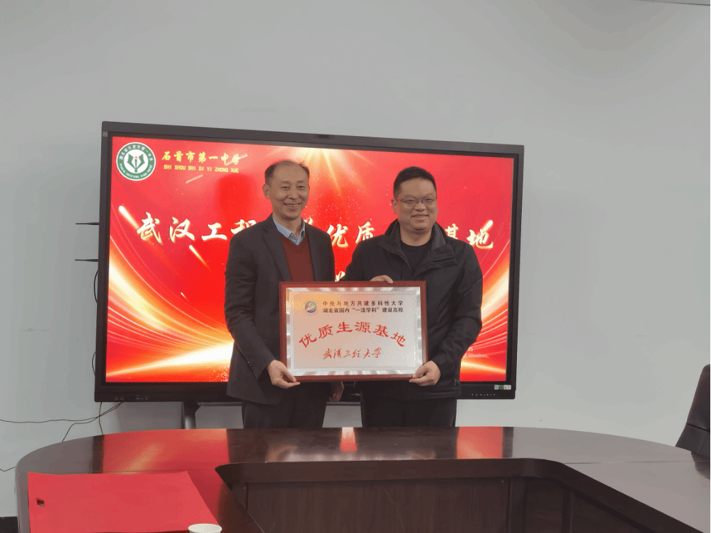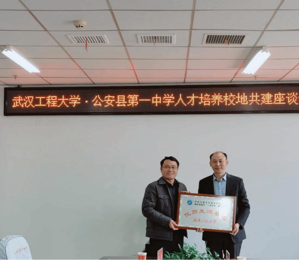 喻发全一行先后走访公安县第一中学、公安县第三中学、石首市第一中学,并分别与各高中校领导班子和高三年级班主任开展座谈;喻发全详细介绍了武汉工程大学办学历史、育人理念、师资队伍、学科建设、人才培养质量等情况,向各中学反馈了近年来输送的生源在校表现情况及毕业去向。他表示,荆州片区作为学校长期以来的优质生源基地,为武汉工程大学输送了大量的优秀学子,希望通过此次走访交流,进一步深化学校与荆州片区各高中的交流沟通,吸引更多优秀学子逐梦工大;会上,喻发全向公安县第一中学、公安县第三中学、石首市第一中学分别授予“优质生源基地”牌匾。