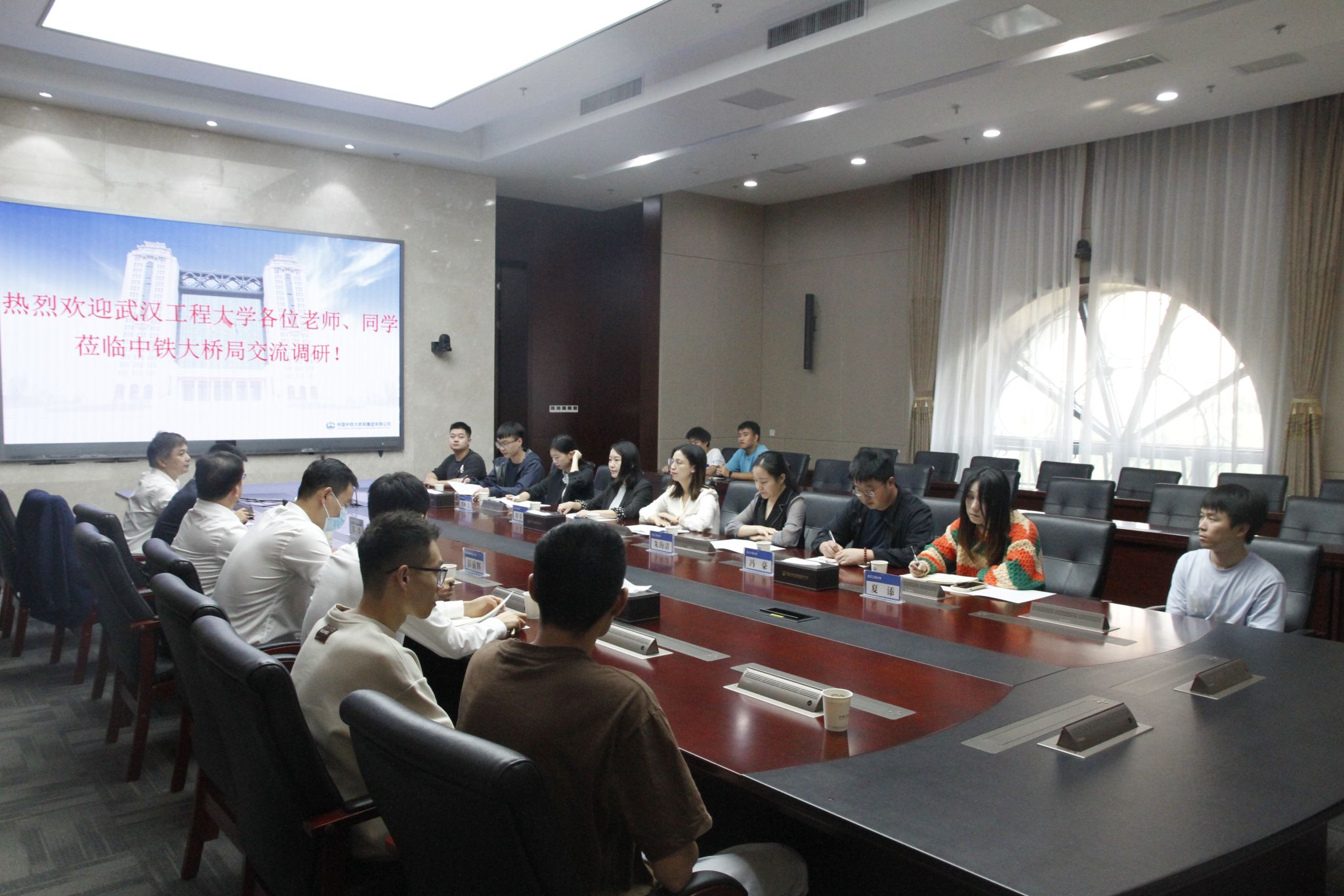 中铁大桥局六公司党委副书记张浩、人力资源部部长李芦林、人力资源部副部长杜小虎就实习、实训、就业等工作与土建学院师生代表进行了交流和探讨。会后,院党委副书记成轶代表学校向中铁大桥局授牌“武汉工程大学就业示范基地”。