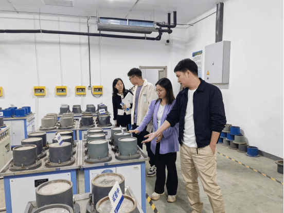会后,在相关负责人的带领下,成轶一行参观了材料检测实验室,讲解员对各种材料检测设备和工艺工法做了详细的介绍。