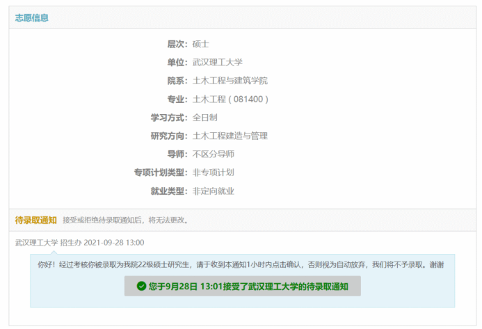大四刚开学不久,也就是9月中旬,我参加了学院的推免生资格的选拔,成功的拿到了保研资格,随后便参加了部分高校的预推免,最后我成功被武汉理工大学预录取,我将在武汉理工大学土木工程与建筑学院继续攻读硕士学位。