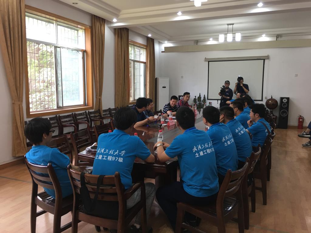 4月30日下午,我校97级交通土建专业学生15人重聚在资源与土木工程学院会议室举行了二十周年聚会——情感班会。院长卢海林、院分党委副书记郭飞、土木工程专业教研室老师周麟、朱志刚、屠艳平以及2014级交通土建专业的学生代表参加了此次活动。