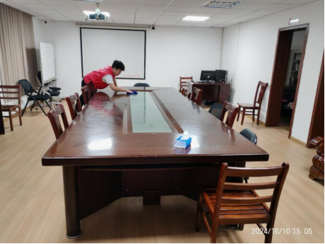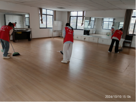 与此同时,另一支志愿者队伍也抵达了吴家湾社区。迎着凉爽的秋风,志愿者们在社区负责人的指挥下打扫起了社区服务中心的卫生,为社区的清洁工作贡献力量。