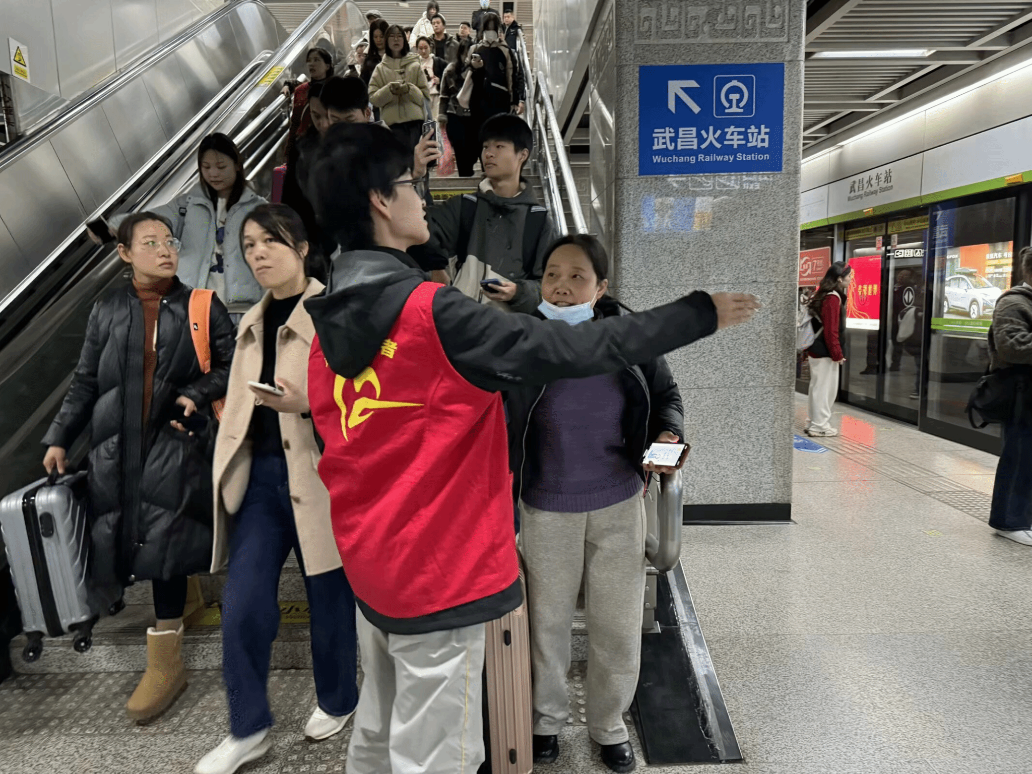 在过去的一年里,370余名志愿者们身穿红马甲,在地铁站内开展文明引导、行李搬运、换乘指引、购票指导、安全提醒等志愿服务工作,用实际行动营造文明出行氛围,展现武工大学子的青春担当。