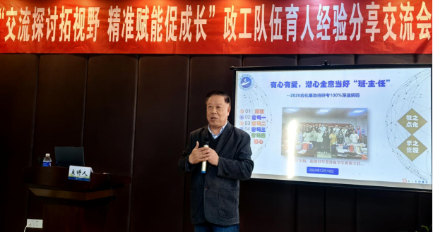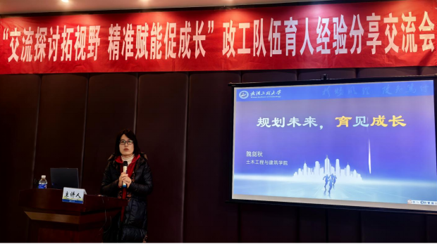 校十佳优秀班主任、土木工程与建筑学院隗剑秋教授以《规划未来,育见成长》为题,结合专业特色,围绕“传统美德教育、管理自治管理、强化专业知识筹己报国”三个要点,分享了在专业教学、人才培养、心理健康教育方面的育人心得,号召全体班主任紧跟党的教育方针,做学生成长成长的“引路人”。