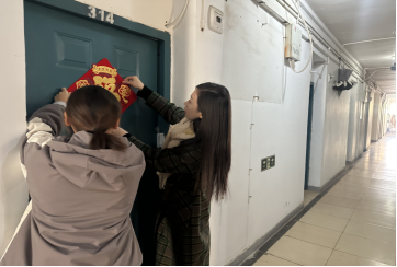 12月31日上午学院领导班子和辅导员走访研究生宿舍,走访期间老师们与同学们亲切交谈,详细了解同学们学习情况和生活状况,叮嘱同学们要注意冬季用电安全,提高防火、防电信诈骗意识,共同营造安全文明、温馨和谐的宿舍环境。同时,老师们为每一间宿舍送上了祝福满满的“福”字,鼓励大家在新的一年里团结互助,努力进取,争创佳绩。