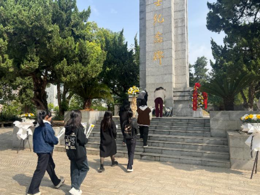 花寄英烈情,追思铸魂行。同学们怀着沉痛的心情,在纪念碑下敬献鲜花。在默哀的三分钟里,每个人都沉浸在深深的怀念与哀思之中,缅怀那些为国捐躯、因正义而牺牲的烈士们。并表示作为新时代的青年,绝不能辜负烈士们的遗愿和期望,勇于担当起时代赋予我们的重任。