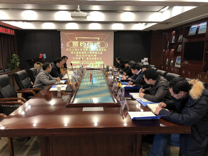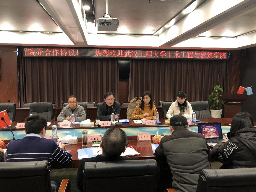 会议由湖北建科国际工程有限公司管理中心副总经理李黎主持,陈旭勇副院长、邬毛志董事长分别代表武汉工程大学土木工程与建筑学院、湖北建科国际工程有限公司致辞。陈旭勇副院长主要介绍了我院专业设置、学科建设、人才培养、专业实习等方面的情况,邬毛志董事长介绍了湖北建科国际工程有限公司的部门设置、专业资质、市场开拓、未来发展等方面的情况。