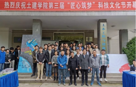 (通讯员肖豪)4月11日中午,“匠心筑梦”科技文化节开幕式在土木工程与建筑学院老二教一楼顺利举行。出席本次活动的嘉宾有土木工程与建筑学院院长卢海林教授、院分党委副书记郭飞书记、副院长陈旭勇院长、院工会主席张哨军主席以及学工办全体辅导员。
