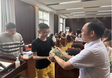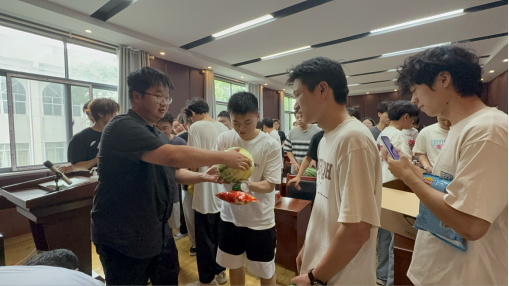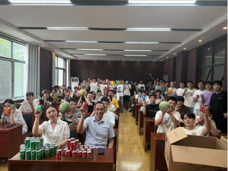 活动现场,精心准备的西瓜、汽水和各类消暑零食有序摆放。学院党委书记陆新在为同学们送上西瓜、汽水时细心叮嘱学生们暑期高温天气要及时补水,务必注意劳逸结合,身体才是学业进步的根基。