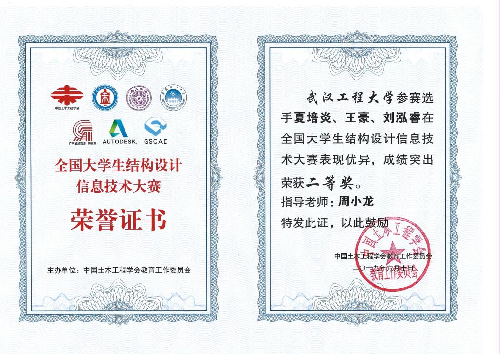 (通讯员 周小龙)2019年6月,历时167天的“第一届全国大学生信息技术大赛”圆满结束,我校土木工程与建筑学院学子在比赛中脱颖而出,荣获二等奖1项(指导教师:周小龙;学生:夏培炎,王豪,刘泓睿),三等奖1项(指导教师:周小龙;学生:文太宏),优胜奖3项(指导教师:庄芸,林智荣,屠艳平;学生:郭静,莫威,刘嘉豪,廖伟明,李存鹏,高峰,李昂,胡亚晴,孔迎迎)。