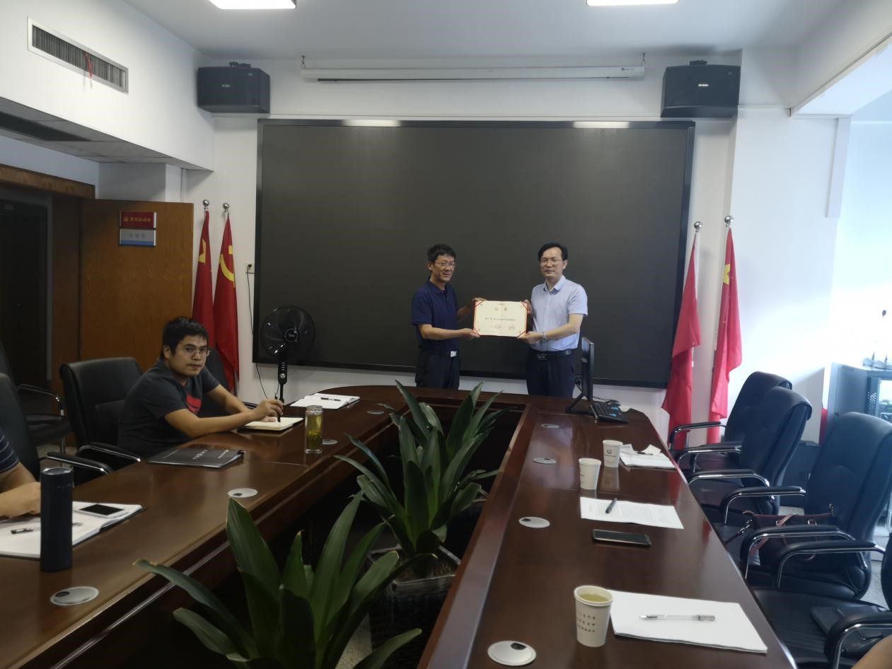 首先陈旭勇副院长向智能公司总经理刘松教授级高级工程师发放湖北产业教授证书。