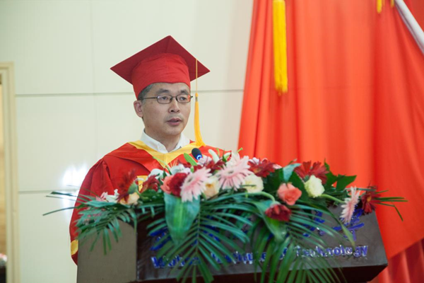 校长王存文发表了热情洋溢的讲话。他代表全校教职员工对全体圆满完成学业、即将踏上人生新征程的毕业研究生表示热烈的祝贺。同时,对全体毕业研究生提出三点希望作为临别赠言:一是要求真。希望毕业生们始终牢记“格物明理致知笃行”的校训,继续发扬“艰苦奋斗,自强不息”的工大精神,持续磨炼刻苦钻研、严谨治学的品质,永远保持对世界的好奇之心和探索之心。二是要有担当。希望毕业生们带着强烈的责任感与使命感,志存高远,脚踏实地,将个人梦想自觉融入国家发展需要,在这个伟大的时代创造性地发现成长和成功中的机遇,以青春之我、奋斗之我,做民族复兴的追梦者、圆梦人。三是要心系母校。工大永远是毕业生坚实的后盾和停泊的港湾,学校和老师们始终关心关注大家的发展,期待毕业生们放手拼搏、展翅翱翔,向母校频传捷报。