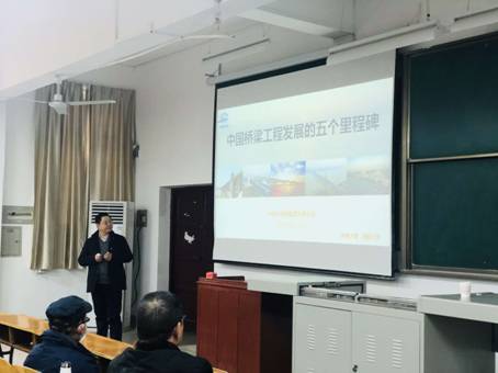 叶绍其总工结合中铁大桥局集团承建的中国现代铁路桥梁发展史上具有里程碑意义的代表性桥梁,交流介绍铁路桥梁从设计、材料、施工技术的发展状态,展望桥梁工程未来发展方向,他着重介绍了由其亲自指挥建造的国内第一座跨海峡公铁两用桥梁——平潭海峡公铁两用跨海大桥的施工难点和关键技术。从他的报告可以看到,我国从桥梁弱国走向桥梁大国,再由桥梁大国跃升为桥梁强国的光辉历程,就是一部中国桥梁人长期艰苦奋斗,不断超越自我的历史。近两个小时的报告内容丰富、数据翔实、声情并茂,给在场的200余名师生带来了一场专业技术知识的精神大餐和思想政治教育的饕餮盛宴。