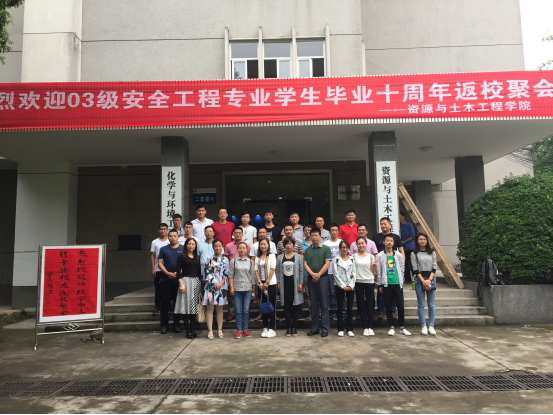 资源与土木工程学院2003级安全工程专业校友毕业十周年返校聚会,校友们回到阔别已久的母校,共庆毕业十周年,追忆同窗旧事,畅谈人生感悟,展望美好未来。9月3日上午,学院分党委书记郭昕、分党委副书记郭飞、安全工程教研室雷克江、胡文军、吴燕玲、贾沛、吝曼卿老师、安全工程专业在校学生与校友们欢聚一堂,畅谈十年来学院的建设,校友们的成长轨迹。