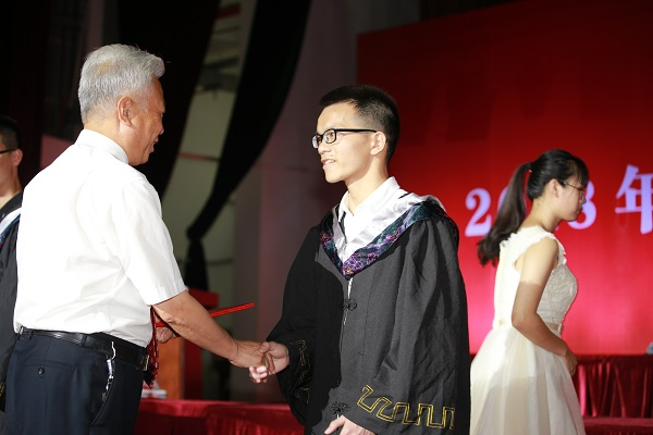 来自机电工程学院机制创新实验班的杨正蒙同学和法商学院法学专业的刘鑫桐同学分别作为毕业生代表发言,他们述说了四年在学校成长的感动点滴,表达了对教师感恩、对母校的深深眷念和不舍,并表示将牢记格物明理、致之笃行的校训,无论走到哪里,母校永远是毕业生的根和源。