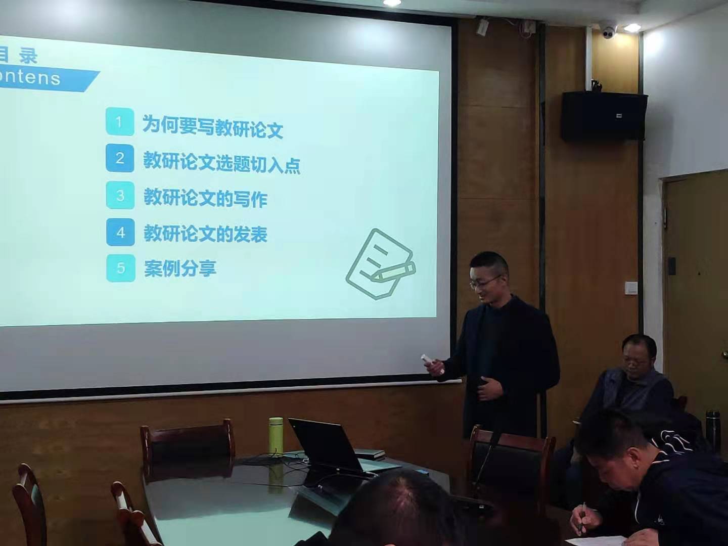 研讨会上,王主任着重对教研论文写作驱动力、教研论文写作与教学工作的关系、教研论文常见的主题以及教研论文结构常见范式和增色等进行深入讲解,在教研论文发表和案例分享方面,王主任结合教学工作实际,与大家共同分享了自己发表教研论文的经验。
