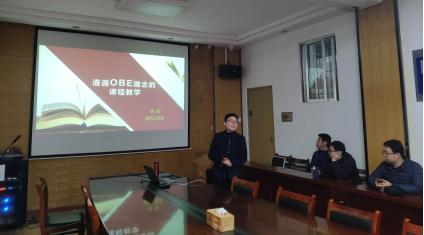 教学研讨活动中,徐雄老师首先介绍了OBE(成果导向教育)教学理念产生的背景、内涵要义以及与传统教学模式的差异,阐述了OBE教学理念是基于学生学习成果为导向的教育模式,其核心内涵是“以生为本”,说明了实施OBE理念的教学重点是要把握好三个关键问题:反向教学设计、以学生为中心的教与学的实施、持续改进的教学评估。