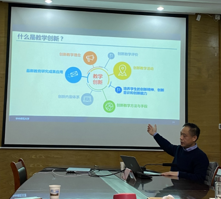 (通讯员彭玉玲杜智)2021年12月15日下午,教师发展中心、土木工程与建筑学院联合超星集团在土木工程与建筑学院213会议室举办了教师教学创新大赛培训会。培训会由土木工程与建筑学院副院长吴巧云教授主持,华中师范大学人工智能教育学部杨九民教授担任主讲,主题为“聚焦教学创新大赛:标准解读与注意事项”。教师发展中心副主任赵春阳、超星集团武汉分公司经理付茜玲莅临此次培训会,土木工程与建筑学院青年教师、部分兄弟学院教师、邮电与信息工程学院教师代表参加了本次培训。
