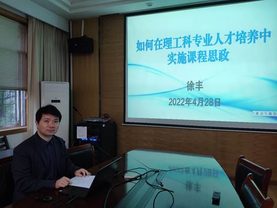 研讨会上,徐丰主任围绕“如何在理工科专业人才培养中实施课程思政”这一主题,紧扣“立德树人师之本,教书不能忘育人”这一核心理念,从“什么是课程思政?课程思政有哪些形式?课程思政有什么特点?如何做好课程思政?”等四个方面对学院做好课程思政建设提出深刻见解。他提到课程思政非常现实和普通,但非常重要,要结合我们的国情,传递给学生正能量的内容。徐主任分享了自己在课程教学中探索总结的“价值引领的课程思政经验”,介绍了理工科专业课程思政的特点、痛点和发力点,着重强调:要做好课程思政,教师首先要自己做好思政,“用心”去做思政,做到“打铁还须自身硬”,练就真本领。