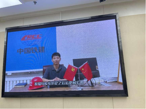 校友代表王朋、张程、王磊汇报了在城轨公司的工作生活、职业发展情况,城轨公司其他校友以视频方式为母校50周年校庆送上祝福。