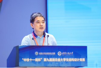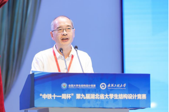 湖北省建设教育协会副会长刘泉声代表协助主办单位发言。他首先向竞赛的成功举办和获奖队伍表示热烈祝贺,向承办单位以及各赞助单位表示衷心感谢。刘泉声指出,此次竞赛使大家感受了结构之美,体会了奋斗之乐,铸就了建造之魂。竞赛比的是作品的强度和刚度,刷新的是结构物的高度和跨度,彰显的是土木学子学识的深度和厚度,体现的是全体土木人克难攻坚的韧度和态度。他希望土木学子要为建设富强、民主、文明、和谐、美丽的中国而奋斗。