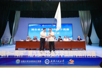 最后,武汉工程大学土木工程与建筑学院院长陈旭勇将湖北省结构竞赛赛旗传交到武汉华夏理工学院土木建筑工程学院院长潘梽橼手中,为期4天的第九届湖北省大学生结构设计竞赛胜利闭幕。