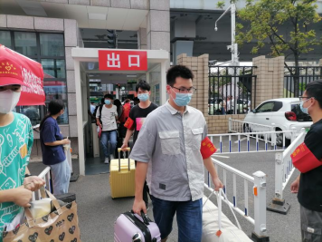 一名党员就是一面旗帜,一份付出就是一份力量。在校门口设立的党员迎新示范岗处,一个又一个肩带红袖章的党员志愿者,忙碌的来回奔波于迎新服务点,主动帮助新生进行行李消杀和物品搬运,引导新生顺利完成入学报道手续,热情解答他们的各种疑问。在炎炎烈日下,虽然汗水早已浸透了衣服,但党员志愿者们依然坚守岗位,服务的热情始终不减。学生党员李伟强从早上7点30分开始,就已经投入到了迎新的志愿服务工作中,他说道:“作为一名党员,理应站在迎新服务第一线,在担当奉献中展现党员风采。虽然一天的工作很辛苦,但也传递了爱心,收获了新生的认可,再苦再累都值得。”