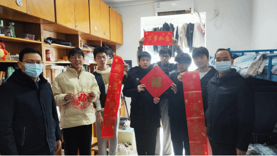 (通讯员:冯豪)为深入挖掘传统节日文化内涵,增强学生对中华优秀文化的认同感和自豪感,营造欢乐祥和、健康文明的节日氛围,土木工程与建筑学院领导班子、全体辅导员于12月29日上午走进学生宿舍,为同学们送上新年的祝福和学院为他们准备的春联。