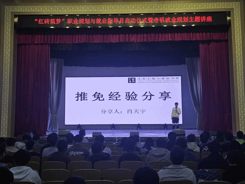 (通讯员 肖咏霓)为帮助2025届本科和研究生毕业生进一步了解当前社会经济形势和就业趋势,合理做好职业规划,积极采取求职行动。土木工程与建筑学院于2024年4月11日下午在武昌校区大礼堂举行“红砖筑梦 ”职业规划与就业指导月启动仪式暨考研就业规划主题讲座?;疃裳г旱澄笔榧浅砷笾鞒?。