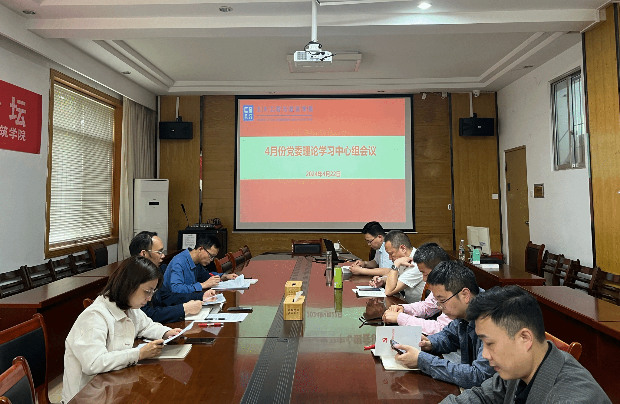 (通讯员 肖咏霓)4月22日下午,土木工程与建筑学院在213会议室组织召开4月份党委理论学习中心组会议。学院党委理论学习中心组成员、院长助理参加本次学习。会议由学院党委书记陆新主持。