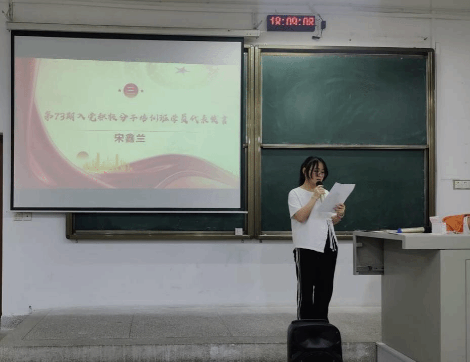 本期入党积极分子和发展对象培训班学员代表宋鑫兰、马月坤在发言中呼吁全体同学:青年强,则国家强,当代中国青年生逢其时,施展才干的舞台无比广阔,要珍惜此次党校学习机会,坚持学思想、重实践,严格遵守课堂纪律,以务实的态度和扎实的作风,确保学习取得实效。