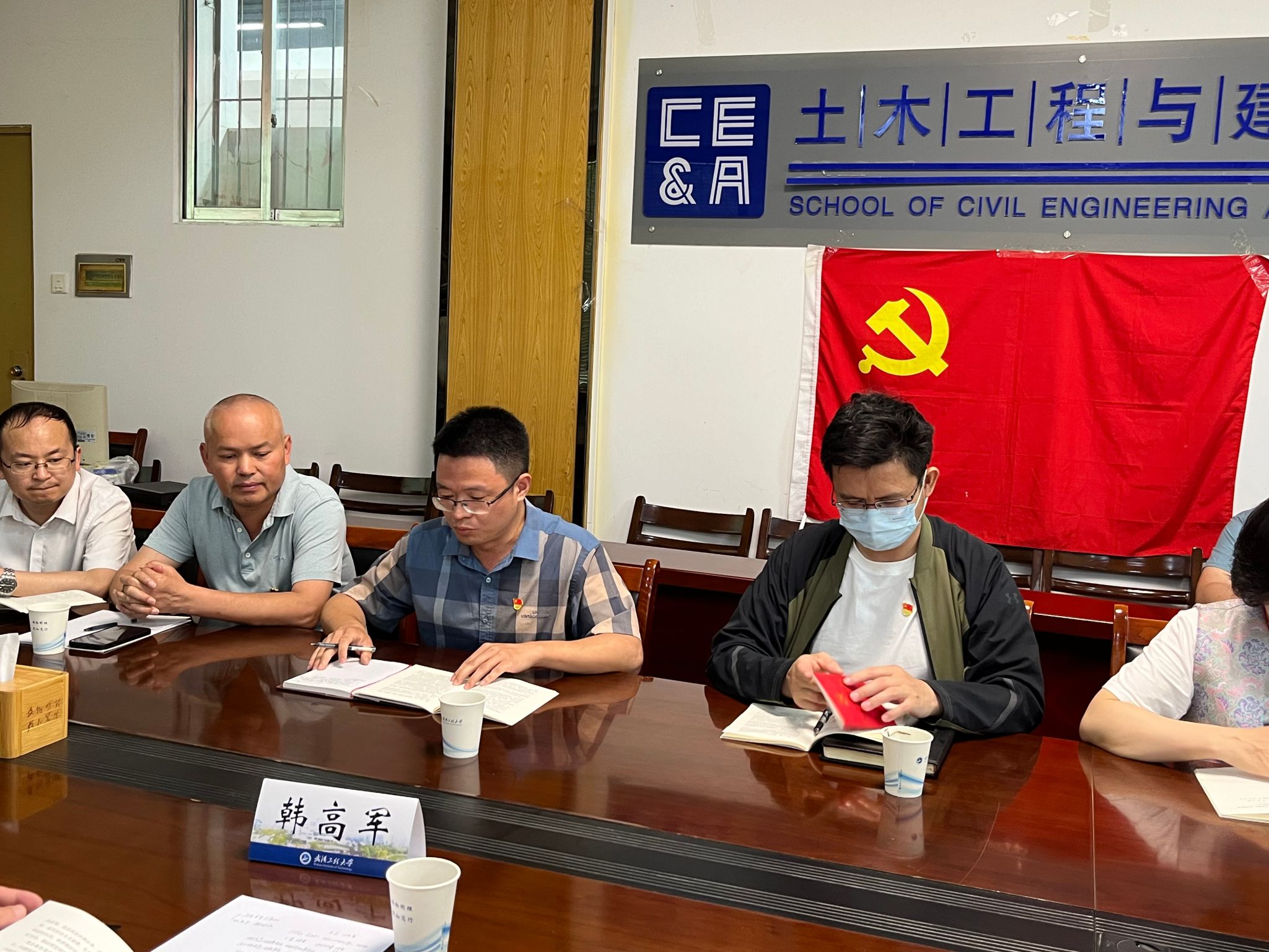 (通讯员 肖咏霓)为深入开展党纪学习教育,5月24日,土木工程与建筑学院道路桥梁与渡河工程教工党支部在学院213会议室开展党纪学习教育主题党日活动。活动以“原原本本学条例,扎扎实实树师风”为主题,校党委常委、宣传部部长韩高军以普通党员的身份参加了此次活动。学院党委书记陆新、道路桥梁与渡河工程教工党支部全体党员参加活动,活动由党支部书记徐丰主持。
