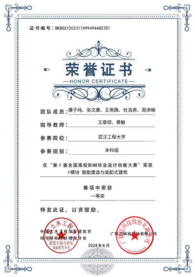 武汉工程大学土木工程与建筑学院在第十届全国高校BIM毕业设计创业大赛决赛取得的成绩,彰显学院在智能建造方向的雄厚实力,学院将认真总结此次国赛的成功经验,持续营造学院科研创新优良学术氛围。(审核:成轶)