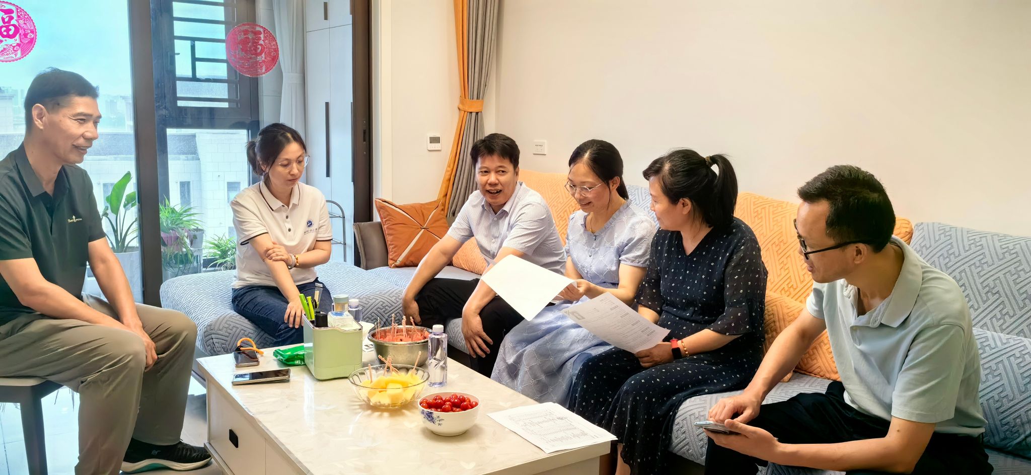 在土木工程与建筑学院2021级建筑工程专业学生李同学家中,师生家长围坐在一起,刘章军、成轶向学生家长详细介绍了李同学在小期间的学习、生活情况。并详细询问学生家庭情况和假期生活安排,并就做好学生未来职业规划等进行交谈。