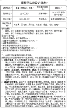 这学期《混凝土结构设计原理》教学团队进一步推进教学改革,团队定期召开研讨例会,围绕教学大纲修订、学生学业预警等研讨教学方法,丰富教学内容,赵程老师跟随课程团队负责人吴巧云老师负责教学研讨例会的组织、会议记录的整理和会议精神的督促落实。